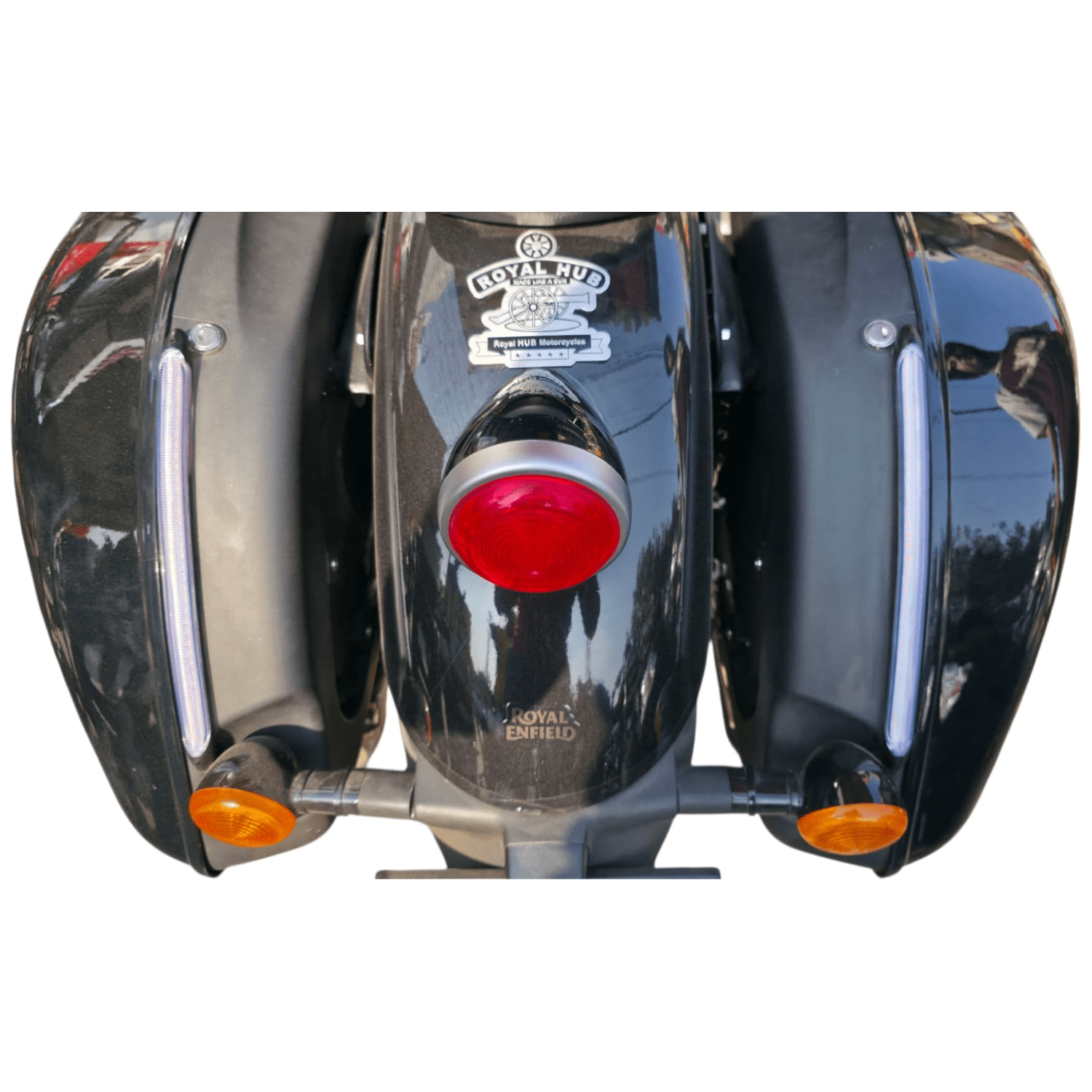 Bright LED pannier lights for Royal Enfield Super Meteor 650. Perfect fit, enhanced visibility, and stylish factory look.