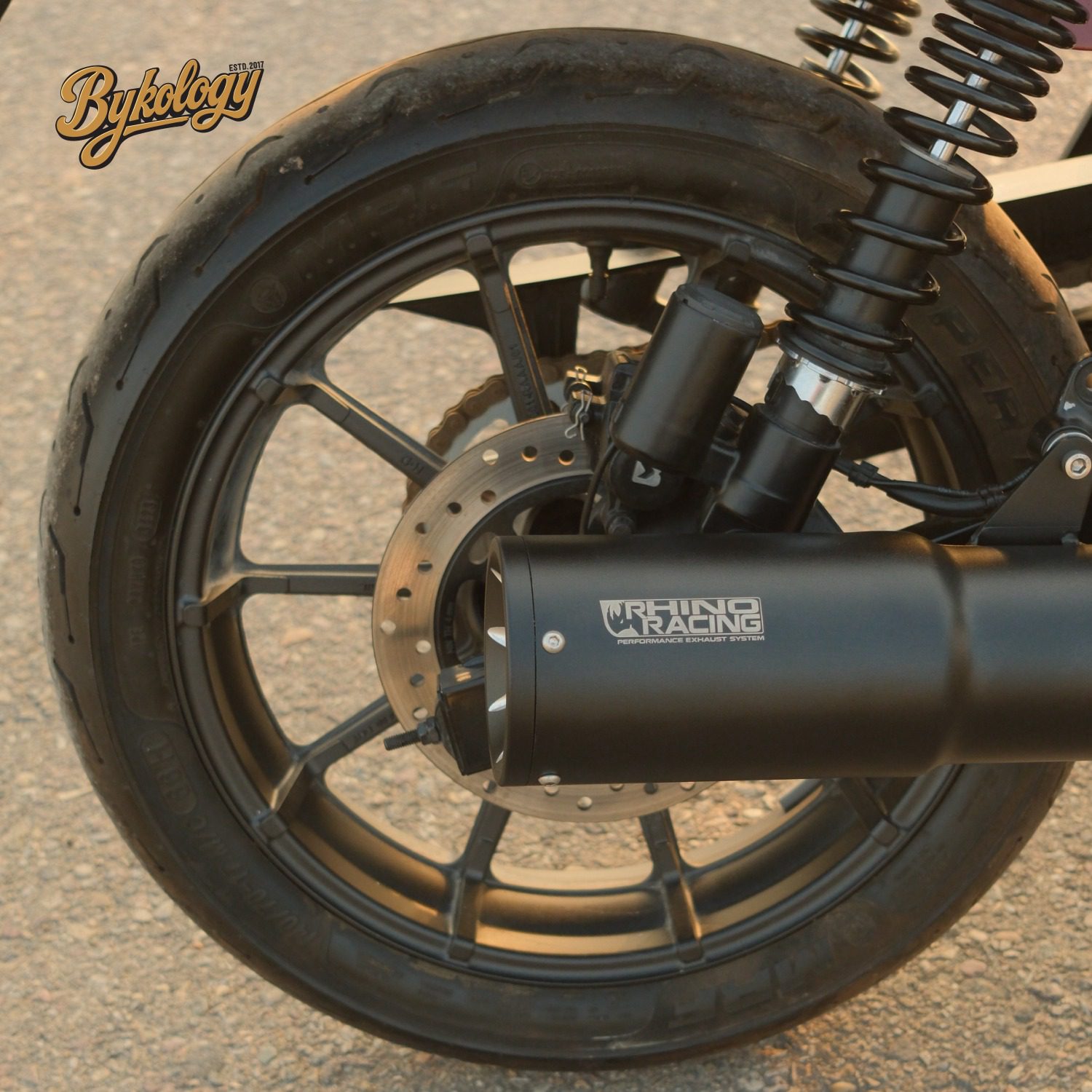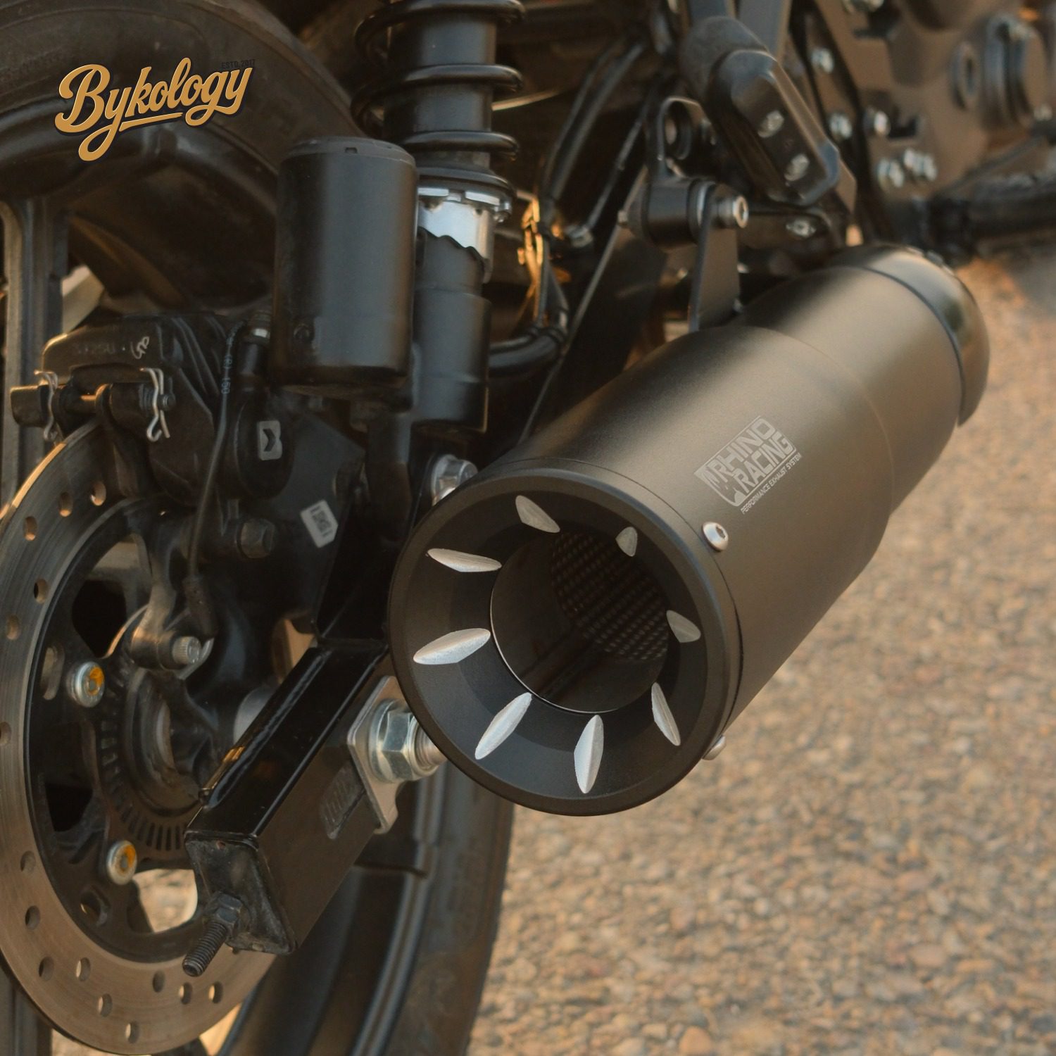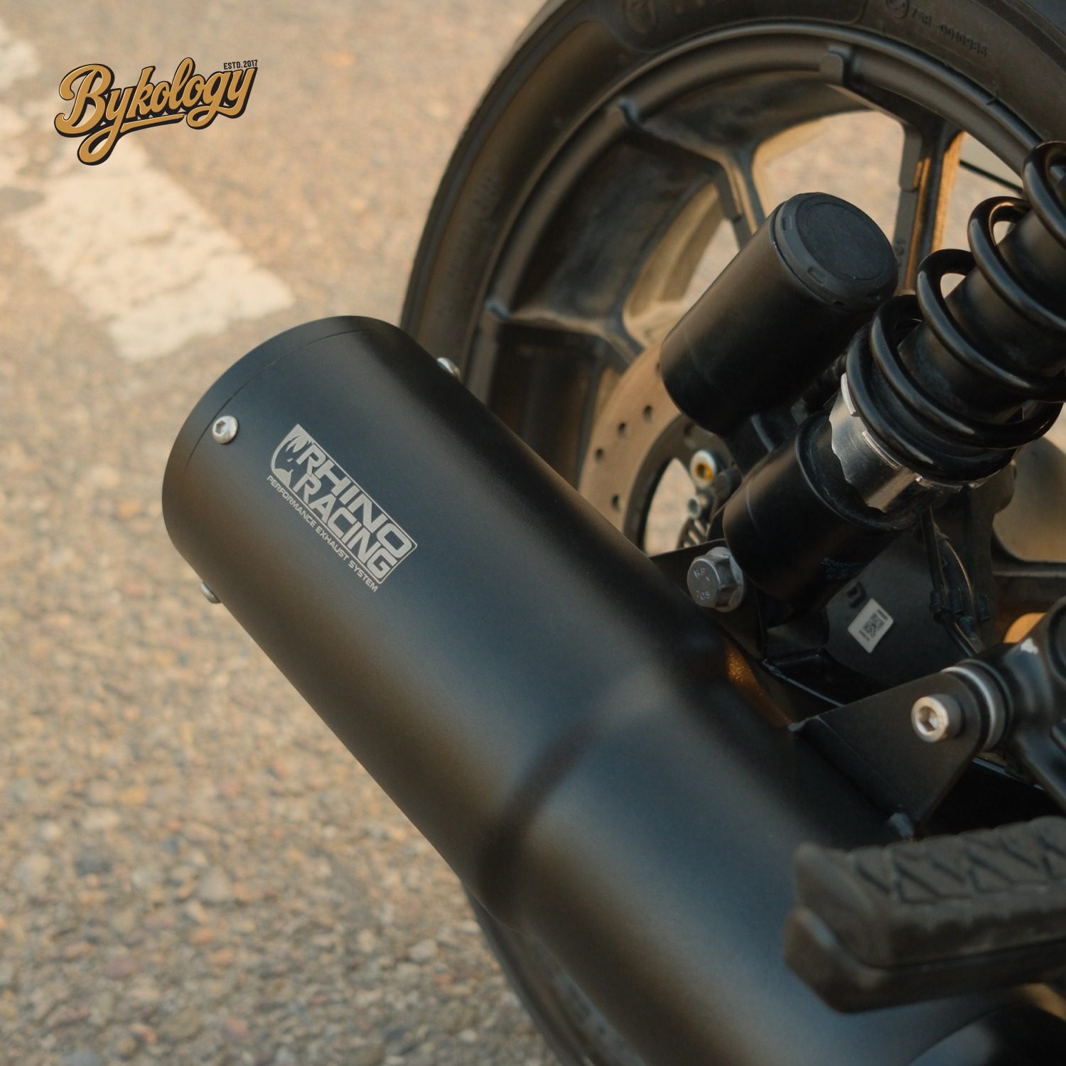 The Rhino Racing Big Bore Grenade is designed to complement the X440’s torquey single-cylinder engine by pairing a freer-flowing core with a tuned stepped design that supports strong low and mid-range drive. Its compact, grenade-inspired profile tightens the rear of the bike for a more aggressive stance, while the chrome-finished stainless body and billet end cap add a premium visual upgrade that looks factory-plus rather than aftermarket bolt-on. On the road, the exhaust delivers a deeper, more pronounced Harley-style thump and crisper response, making everyday commutes and weekend rides feel more alive without sacrificing practicality.